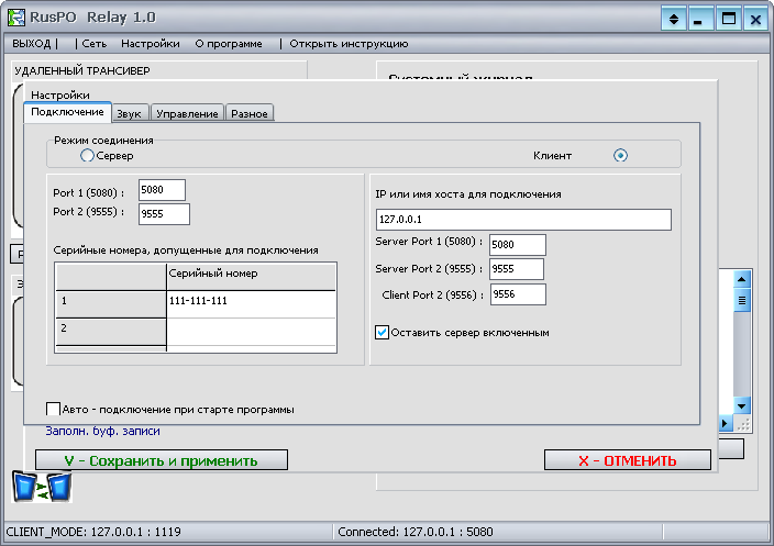 управлять удаленным трансивером (рацией)