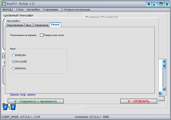 второго экземпляра программы RusPO Relay. Для этого