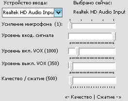 Показывает уровень сигнала на входе звуковой подсистемы ПК (MIC или LINE IN).